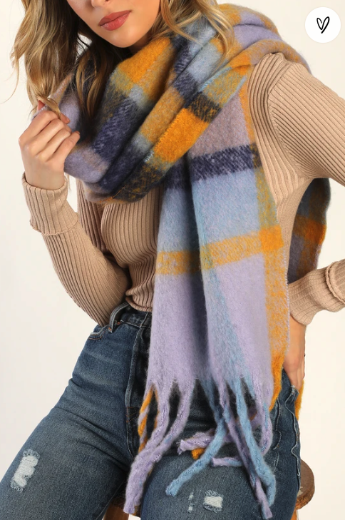 Wintery Vision Lavender Multi Plaid Fringe Oversized Scarf - $34